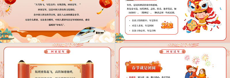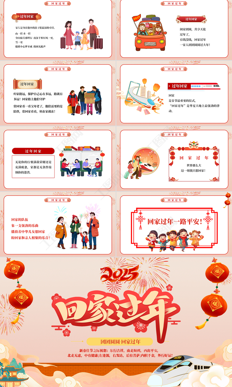 回家過年團(tuán)團(tuán)圓圓PPT新年新春安全出行平安回家過新年下載