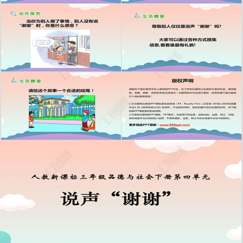 工圖網提供品德與社會說聲謝謝PPT課件供會員免費下載。更多精彩黨課PPT素材,盡在工圖網。