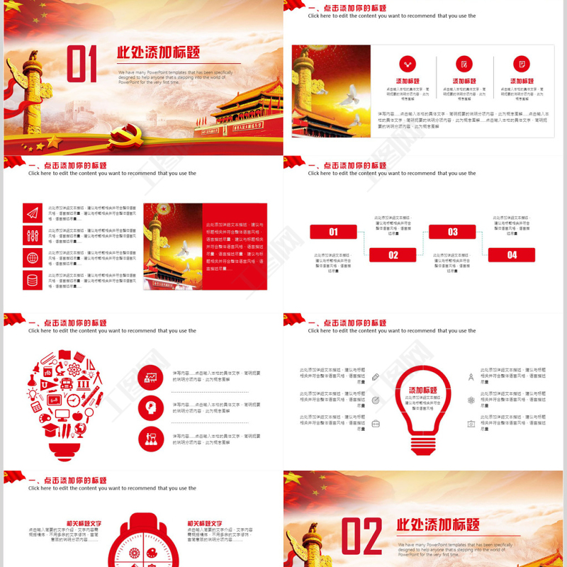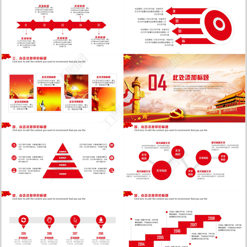 2018紅色工作總結(jié)工作匯報PPT模板包含