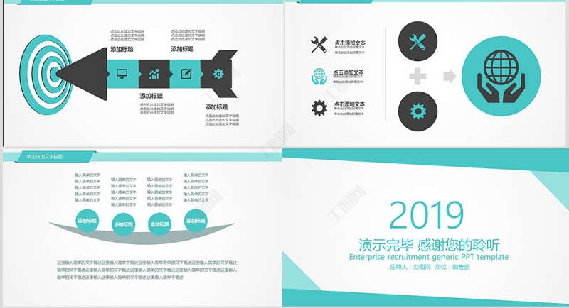 演示完畢 感謝您的聆聽2019Enterprise recruitment generic PPT template應(yīng)聘人:辦圖網(wǎng) 崗位:銷售部