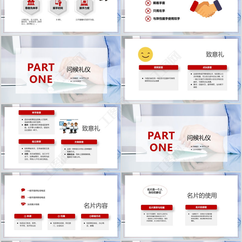 工圖網(wǎng)提供 商務(wù)風(fēng)見(jiàn)面禮儀通用PPT模板供會(huì)員免費(fèi)下載。更多精彩黨課PPT素材,盡在工圖網(wǎng)。