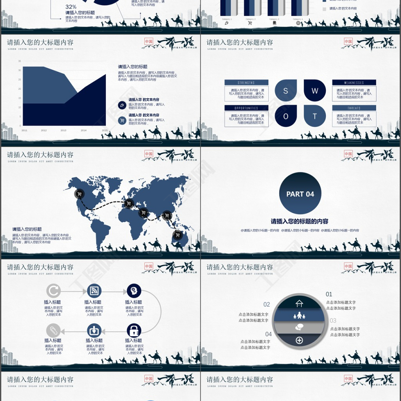 工圖網(wǎng)提供【30頁(yè)動(dòng)態(tài)】2017年黨建政治一帶一路簡(jiǎn)約國(guó)風(fēng)PPT模板供會(huì)員免費(fèi)下載。更多精彩黨課PPT素材,盡在工圖網(wǎng)。