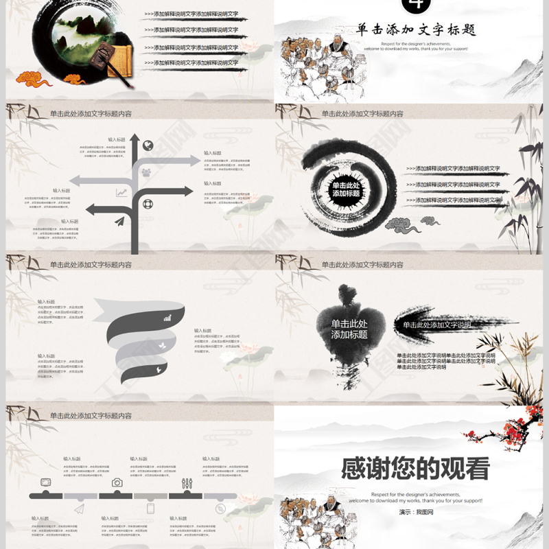 國學(xué)文化古風(fēng)古典古韻水墨中國風(fēng)PPT模板 Array