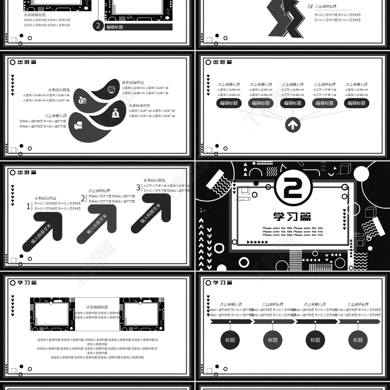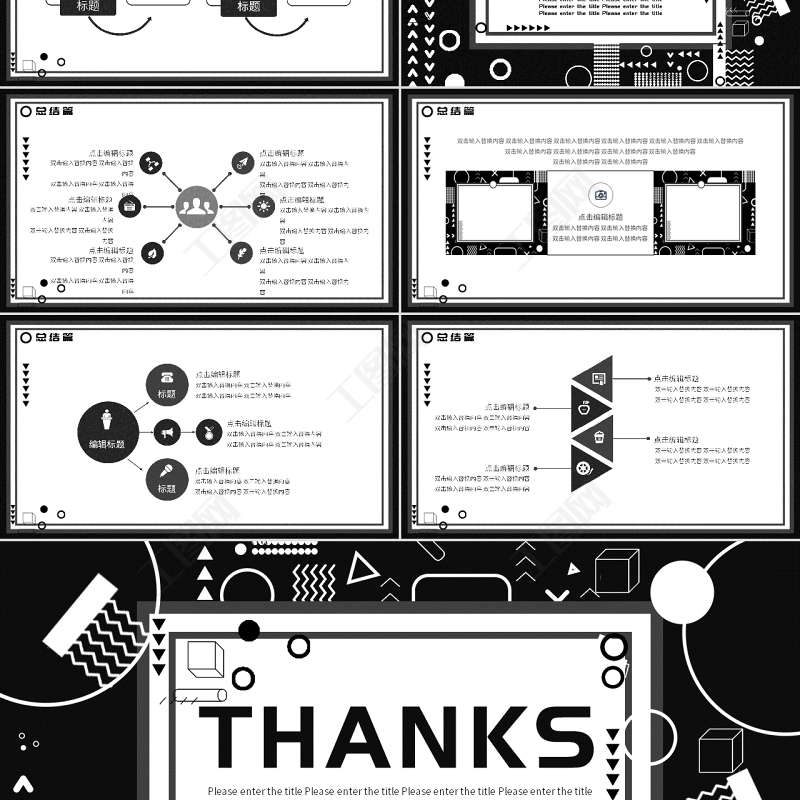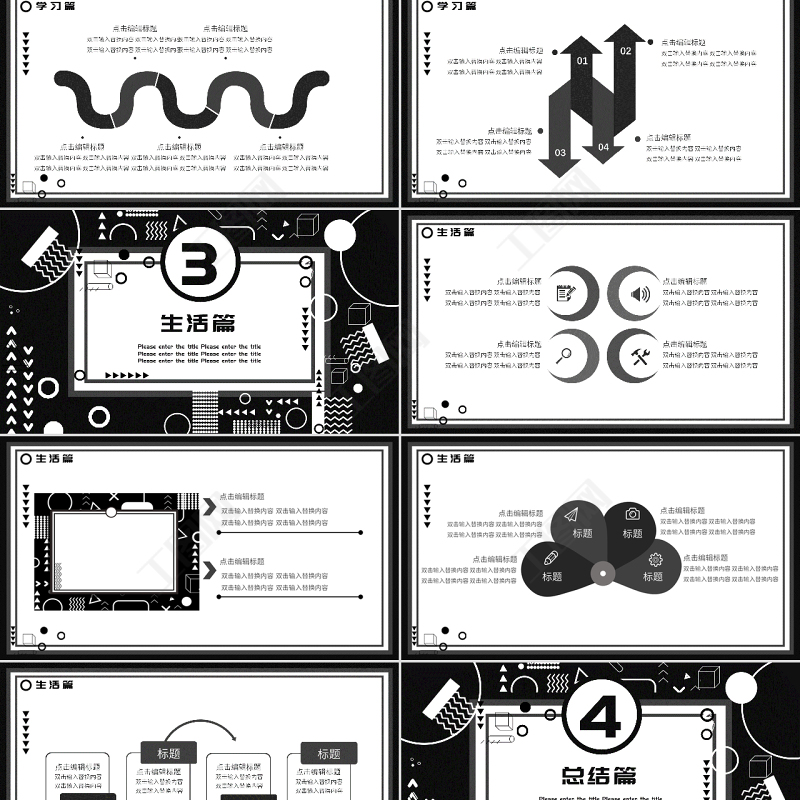黑白孟菲斯風(fēng)格通用PPT模板 Array
