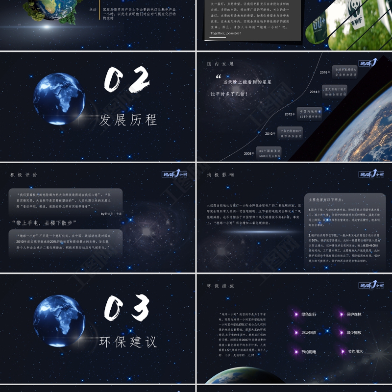 工圖網(wǎng)提供黑色簡潔風地球一小時主題策劃PPT模板供會員免費下載。更多精彩黨課PPT素材,盡在工圖網(wǎng)。