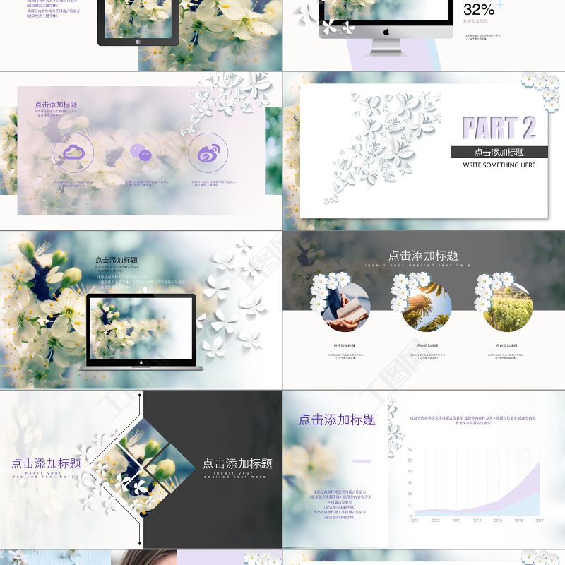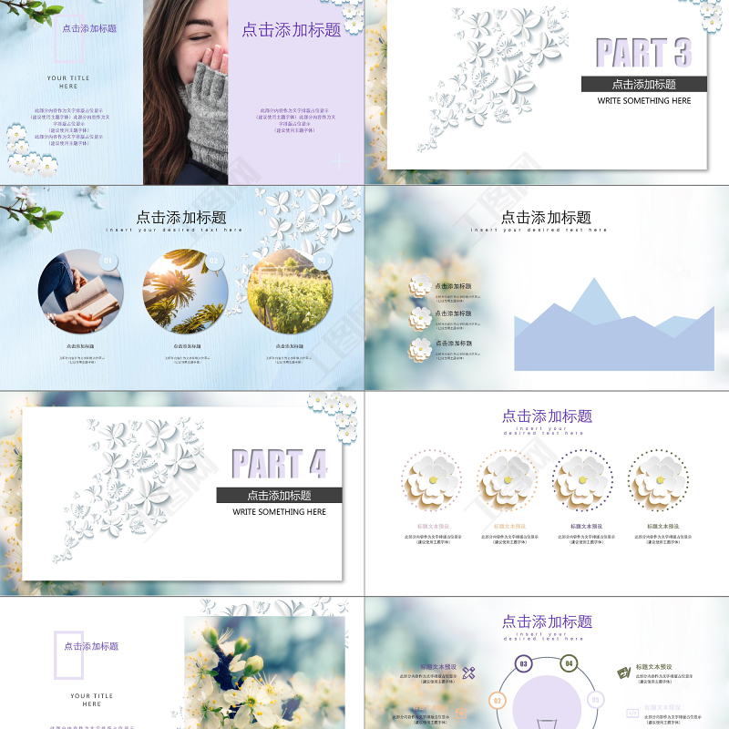 淡雅小清新微立體花瓣述職報(bào)告PPT模板 Array