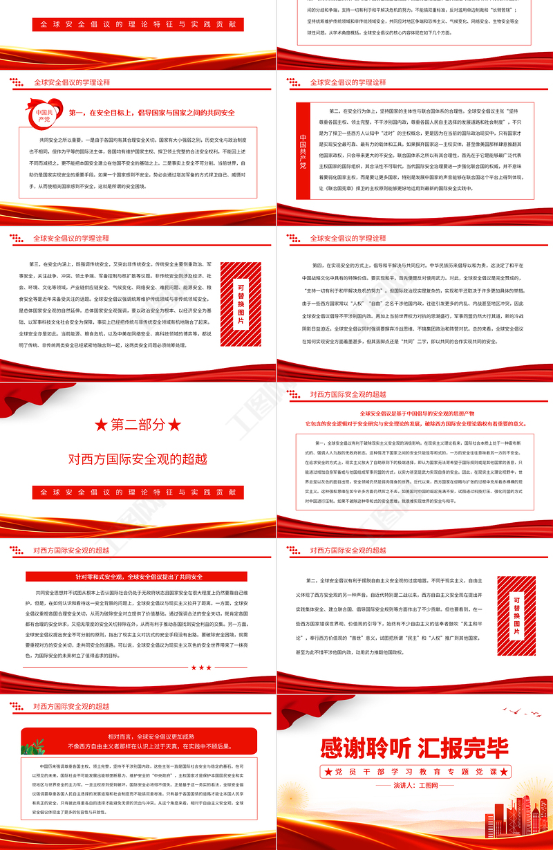 工圖網(wǎng)提供2023全球安全倡議的理論特征與實(shí)踐貢獻(xiàn)PPT紅色精美風(fēng)黨員干部學(xué)習(xí)教育專題黨課黨建課件供會(huì)員免費(fèi)下載。更多精彩黨課PPT素材,盡在工圖網(wǎng)。