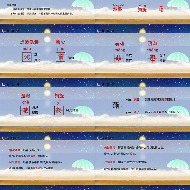 萌發(fā)萌芽méng萌萌動澄清澄碧澄澄澈chéng我會認