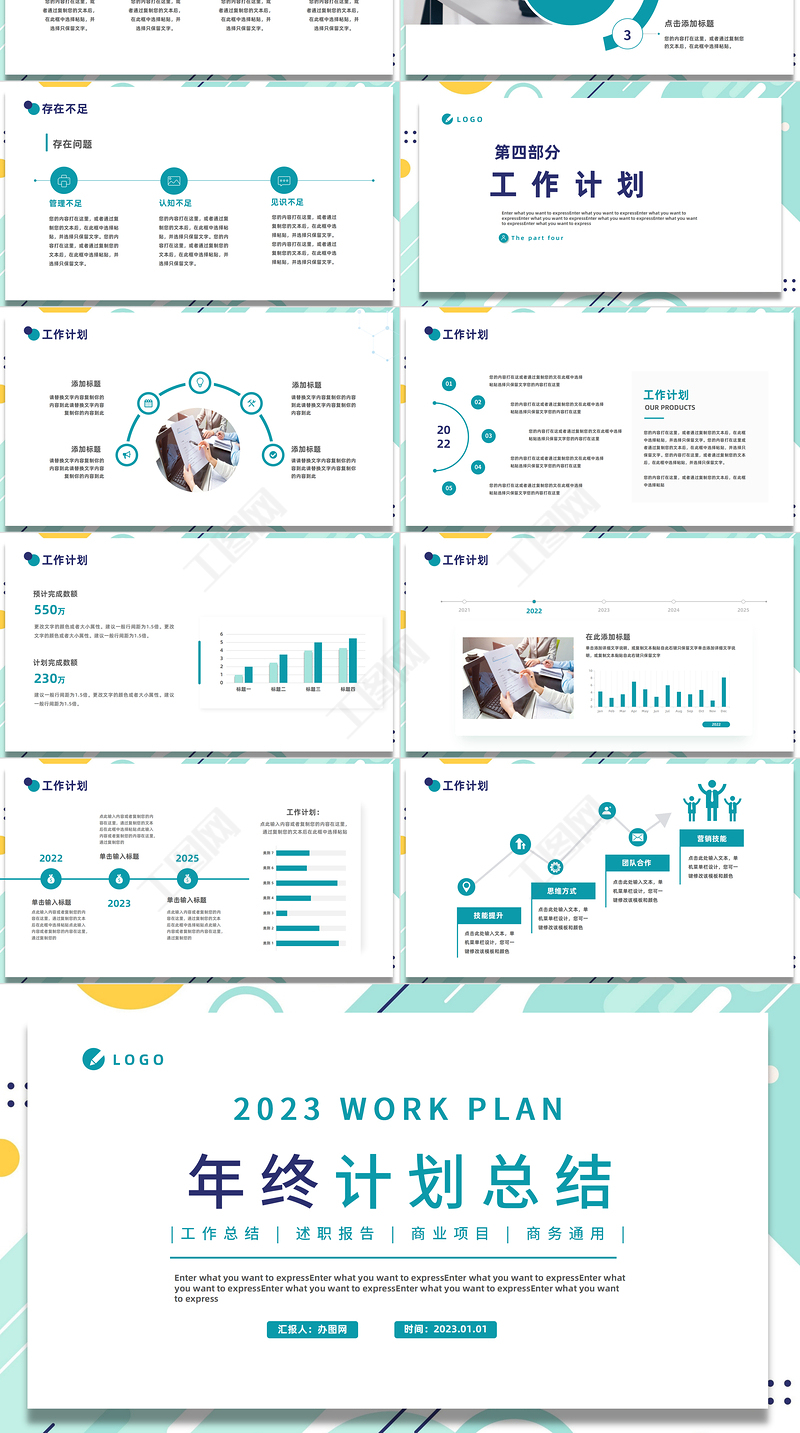 2023年終工作計(jì)劃PPT清新幾何風(fēng)格年中工作總結(jié)計(jì)劃述職匯報(bào)報(bào)告模板包含