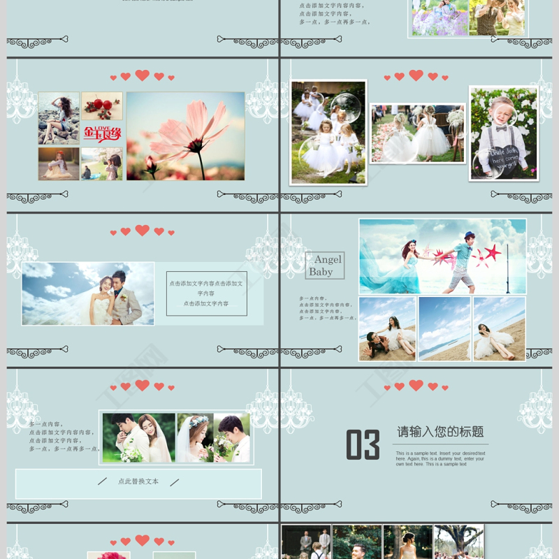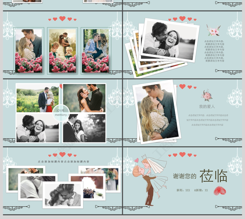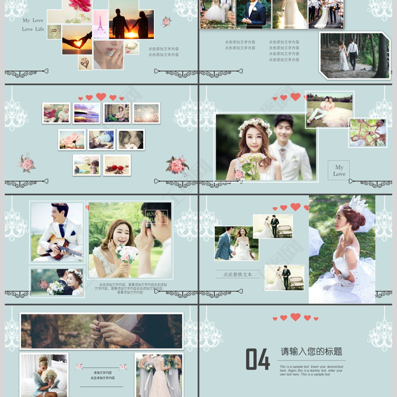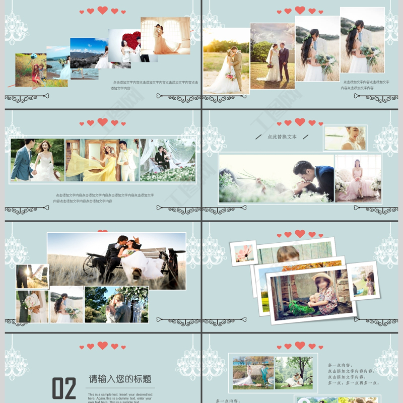 小清新婚禮相冊(cè)典禮背景婚慶策劃PPT模板 Array