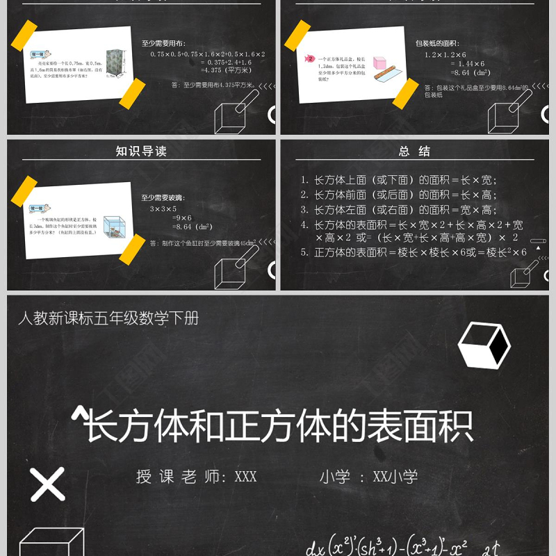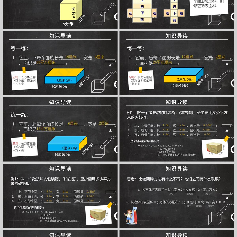,長方體和正方體的表面積五年級數(shù)學(xué)課件PPT模板 Array