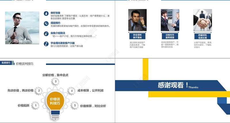 交流溝通技巧實(shí)戰(zhàn)技巧學(xué)會(huì)傾聽善于贊揚(yáng)通過傾聽發(fā)現(xiàn)客戶的真實(shí)需求,了解客戶的真正意圖注視對方面帶笑容說話時(shí)望著客戶,不能一直瞪著客戶,用柔和眼光交流把握時(shí)機(jī)促成交易從客戶的語言、表情、動(dòng)作的變化,了解購買意向