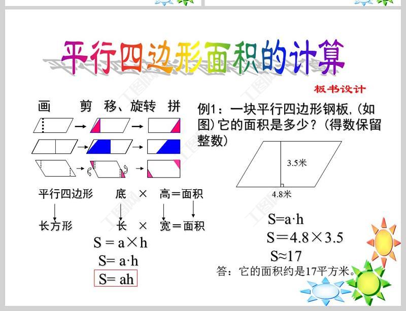 ,多邊形的面積平行四邊形的面積PPT模板 Array