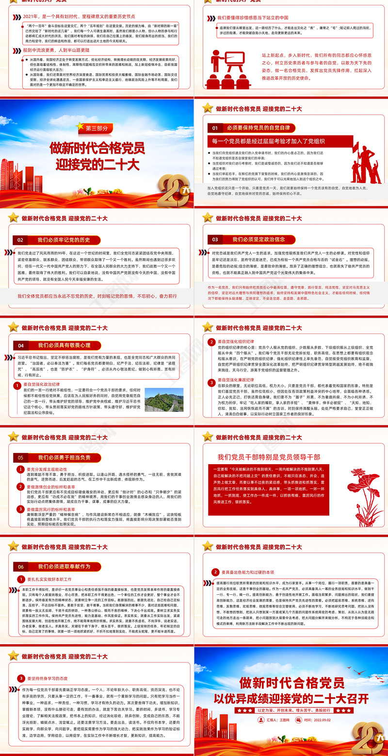 2022年,中國共產(chǎn)黨將召開第二十次全國代表大會。這是黨和國家政治生活中的一件大事。我們要繼續(xù)發(fā)揚歷史主動精神,乘勢而上,砥礪前行,走好全面建設(shè)社會主義現(xiàn)代化國家新的趕考之路,并準備為之付出更為艱巨、更為艱苦的努力,著力保持平穩(wěn)健康的經(jīng)濟環(huán)境、風(fēng)清氣正的政治環(huán)境、國泰民安的社會環(huán)境,以實際行動迎接中共二十大勝利召開。前言PERFACE