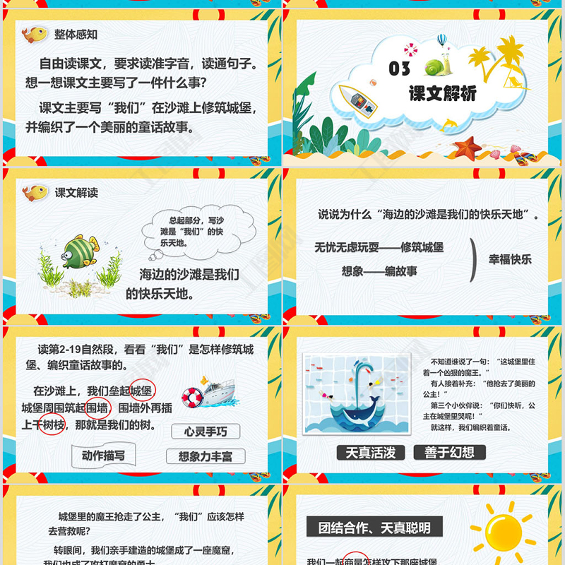 二年級(jí)語文下冊課件沙灘上的童話PPT模版 語文PPT 沙灘上的童話PPT課件模板 二年級(jí)語文下冊課件PPT模板 卡通PPT模板 小學(xué)PPT模板 彩色PPT模板 Array