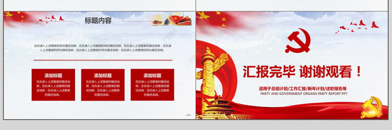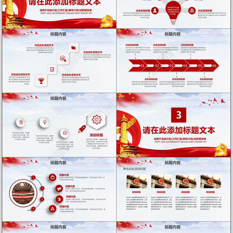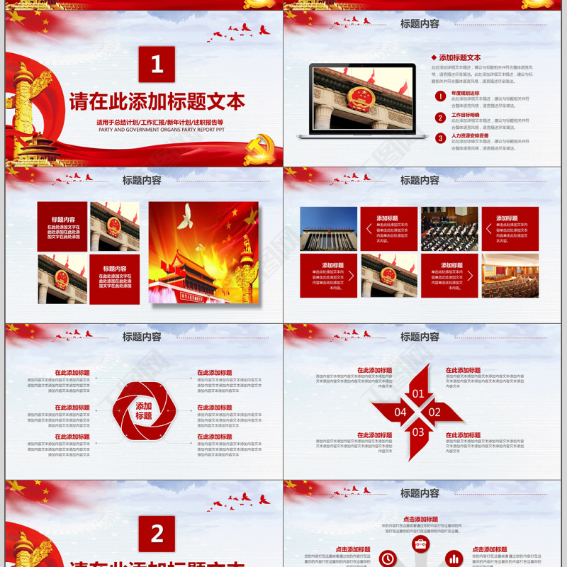 莊重大氣黨政黨建政府機關工作匯報黨課PPT模板包含