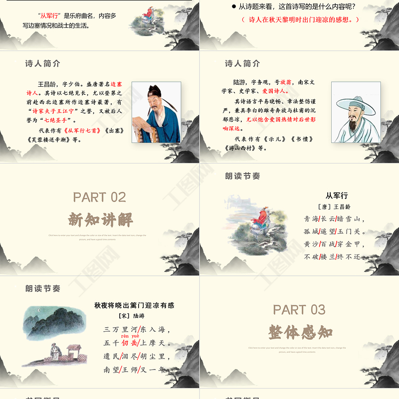 工圖網(wǎng)提供2022古詩三首 從軍行PPT第9課小學(xué)五年級(jí)語文下冊(cè)部編人教版教學(xué)課件供會(huì)員免費(fèi)下載。更多精彩黨課PPT素材,盡在工圖網(wǎng)。