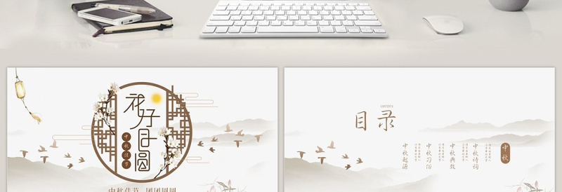 素雅大氣中國風(fēng)中秋介紹PPT模板 Array