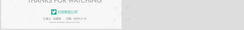 <p>OTSSWOT分析PPT模板優(yōu)勢 | 劣勢 | 機(jī)會 | 威脅</p><br><p></p><br><p>什么是SWOT分析?</p><br><p>什么是SWOT分析?SWOT分析法是用來確定企業(yè)自身的競爭優(yōu)勢、競爭劣勢、機(jī)會和威脅,從而將公司的戰(zhàn)略與公司內(nèi)部資源、外部環(huán)境有機(jī)地結(jié)合起來的一種科學(xué)的分析方法。所謂SWOT分析,即基于內(nèi)外部競爭環(huán)境和競爭條件下的態(tài)勢分析,就是將與研究對象密切相關(guān)的各種主要內(nèi)部優(yōu)勢、劣勢和外部的機(jī)會和威脅等,通過調(diào)查列舉出來,并依照矩陣形式排列,然后用系統(tǒng)分析的思想,把各種因素相互匹配起來加以分析,從中得出一系列相應(yīng)的結(jié)論,而結(jié)論通常帶有一定的決策性。</p><br><p>什么是SWOT分析?</p><br><p>SWOT分析模型</p><br><p>SWOT整體分析戰(zhàn)略目標(biāo)</p><br><p>優(yōu)勢與劣勢分析(SW)標(biāo)題數(shù)字等都可以通過點(diǎn)擊和重新輸入進(jìn)行更改頂部“開始”面板中可以對字體、字號、顏色、行距等進(jìn)行修改建議正文10號字,1.3倍字間距標(biāo)題數(shù)字等都可以通過點(diǎn)擊和重新輸入進(jìn)行更改頂部“開始”面板中可以對字體、字號、顏色、行距等進(jìn)行修改建議正文10號字,1.3倍字間距</p><br><p>機(jī)會與威脅分析(OT)標(biāo)題數(shù)字等都可以通過點(diǎn)擊和重新輸入進(jìn)行更改頂部“開始”面板中可以對字體、字號、顏色、行距等進(jìn)行修改建議正文10號字,1.3倍字間距標(biāo)題數(shù)字等都可以通過點(diǎn)擊和重新輸入進(jìn)行更改頂部“開始”面板中可以對字體、字號、顏色、行距等進(jìn)行修改建議正文10號字,1.3倍字間距</p><br><p>SWOT分析法的規(guī)則</p><br><p>SWOT分析法的規(guī)則</p><br><p>SWOT分析步驟</p><br><p>SWOT分析步驟</p><br><p>內(nèi)部環(huán)境分析SW 優(yōu)勢與劣勢分析SW</p><br><p>SW分析領(lǐng)域 從Q、C、DD、DL、M、S幾個領(lǐng)域進(jìn)行分析:</p><br><p>外部環(huán)境分析OT 機(jī)會與威脅分析OT</p><br><p>PEST分析法</p><br><p>波特五力模型分析法對于企業(yè)外部環(huán)境分析,波特在SOWT分析的基礎(chǔ)之上,提出了分析產(chǎn)業(yè)結(jié)構(gòu)的『五力分析』,以求策略分析的細(xì)化和深化。產(chǎn)業(yè)環(huán)境中的成員,可由五種競爭作用力共同決定,五股作用力就稱為『五力』。</p><br><p>現(xiàn)有競爭者同行競爭者分析指標(biāo)</p><br><p>潛在競爭者一個產(chǎn)業(yè),只要有市場前景,有可觀利潤,一定會招來其它企業(yè)的投資,這些企業(yè)就是潛在競爭者。這些競爭者的加入必然會導(dǎo)致:競爭者的加入會導(dǎo)致的威脅</p><br><p>替代品123</p><br><p>客 戶選擇優(yōu)質(zhì)的客戶,是非常重要的:</p><br><p>供應(yīng)商選擇優(yōu)質(zhì)的供應(yīng)商,同等也非常重要:</p><br><p>構(gòu)造SWOT矩陣內(nèi)部分析外部分析</p><br><p>制定戰(zhàn)略計劃</p><br><p>威脅和劣勢的原因和對策 目的:將威脅降到最低,將劣勢減到最?。?lt;/p><br><p>對策措施SWOT</p><br><p>主要戰(zhàn)略SWOT分析只是戰(zhàn)略發(fā)展的第一步,企業(yè)需要進(jìn)一步找到內(nèi)部要素與外部環(huán)境的結(jié)合點(diǎn),有效調(diào)整整合內(nèi)部各要素,以吻合或超越外部環(huán)境的變化,獲取競爭優(yōu)勢。此矩陣就是將內(nèi)部要素與外部環(huán)境結(jié)合分析的工具。通過將強(qiáng)弱勢與機(jī)會威脅對應(yīng)進(jìn)行分割,可得出企業(yè)應(yīng)對環(huán)境變化的4個主要戰(zhàn)略:</p><br><p>SWOT分析局限性SWOT分析范圍很廣,如果缺乏事實(shí)和數(shù)據(jù),分析就會變得很籠統(tǒng),制定的戰(zhàn)略就會缺乏依據(jù),成為沒有價值戰(zhàn)略方案,它帶有時代的局限性:進(jìn)行SWOT分析的時候必須對公司的優(yōu)勢與劣勢有客觀的認(rèn)識進(jìn)行SWOT分析的時候必須區(qū)分公司的現(xiàn)狀與前景進(jìn)行SWOT分析的時候必須考慮全面進(jìn)行SWOT分析的時候必須與競爭對手進(jìn)行比較保持SWOT分析法的簡潔化,避免復(fù)雜化與過度分析SWOT分析法因人而異</p><br><p>感 觀看THANKS FOR WATCHING匯報人:辦圖網(wǎng) 日期:2019-7-19STRENGTHS WEAKNESSES OPPORTUNITIES THREATS</p><br>