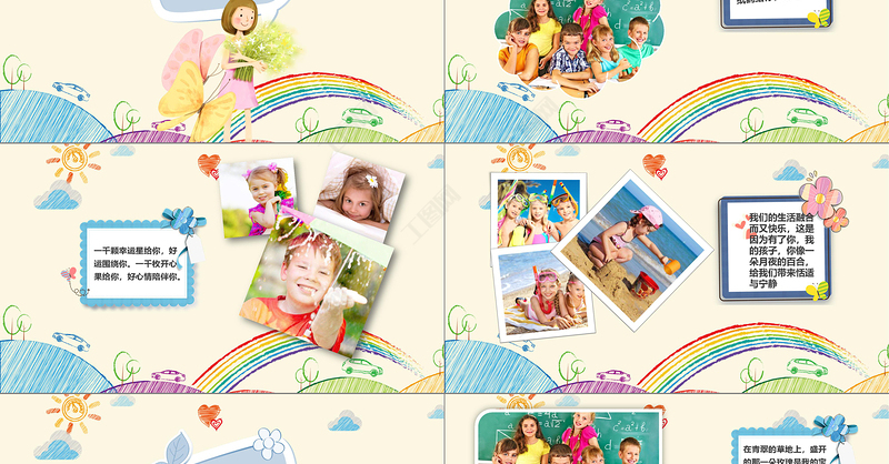 可愛溫馨彩色卡通風(fēng)兒童成長相冊精美相冊寶寶生日PPT模板