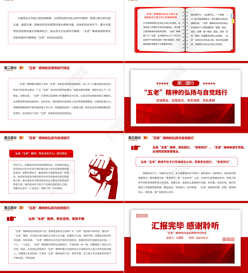 黨員教育培訓(xùn)專(zhuān)題黨課——喜迎二十大 永遠(yuǎn)跟黨走 奮進(jìn)新征程——匯報(bào)完畢 感謝聆聽(tīng) “五老”精神的內(nèi)涵實(shí)質(zhì)和時(shí)代特征宣講人:工圖網(wǎng) 時(shí)間:2023.04.27