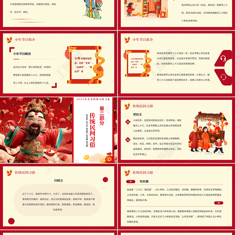 祭灶PPT紅色喜慶迎小年賀小年介紹主題班會模板 Array