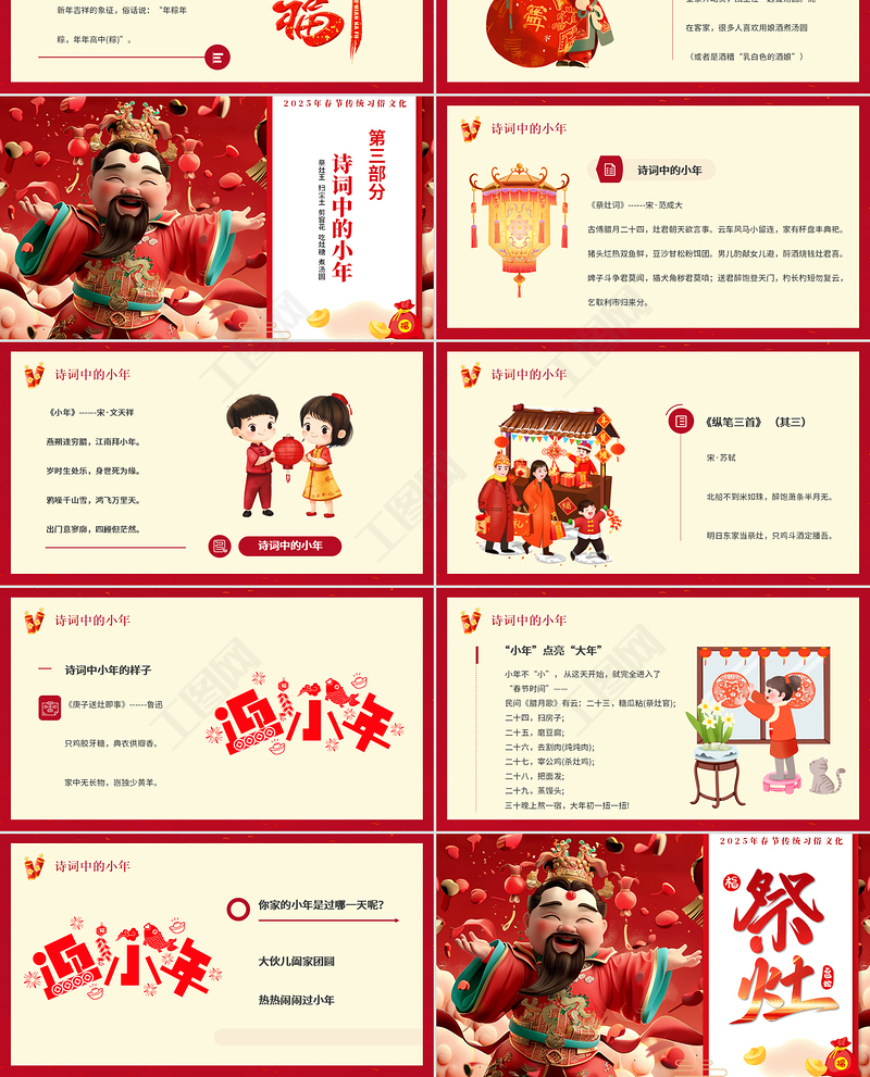 工圖網(wǎng)提供祭灶PPT紅色喜慶迎小年賀小年介紹主題班會模板供會員免費(fèi)下載。更多精彩黨課PPT素材,盡在工圖網(wǎng)。