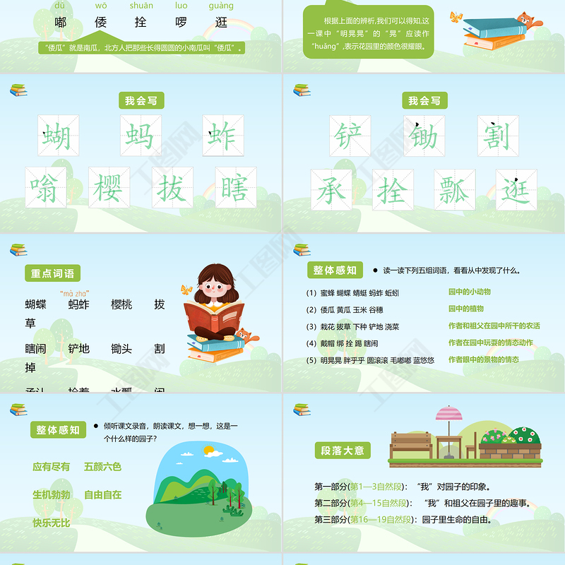 蝴蝶 螞蚱 櫻桃 拔草 瞎鬧 鏟地 鋤頭 割掉 承認(rèn) 拴著 水瓢 閑逛