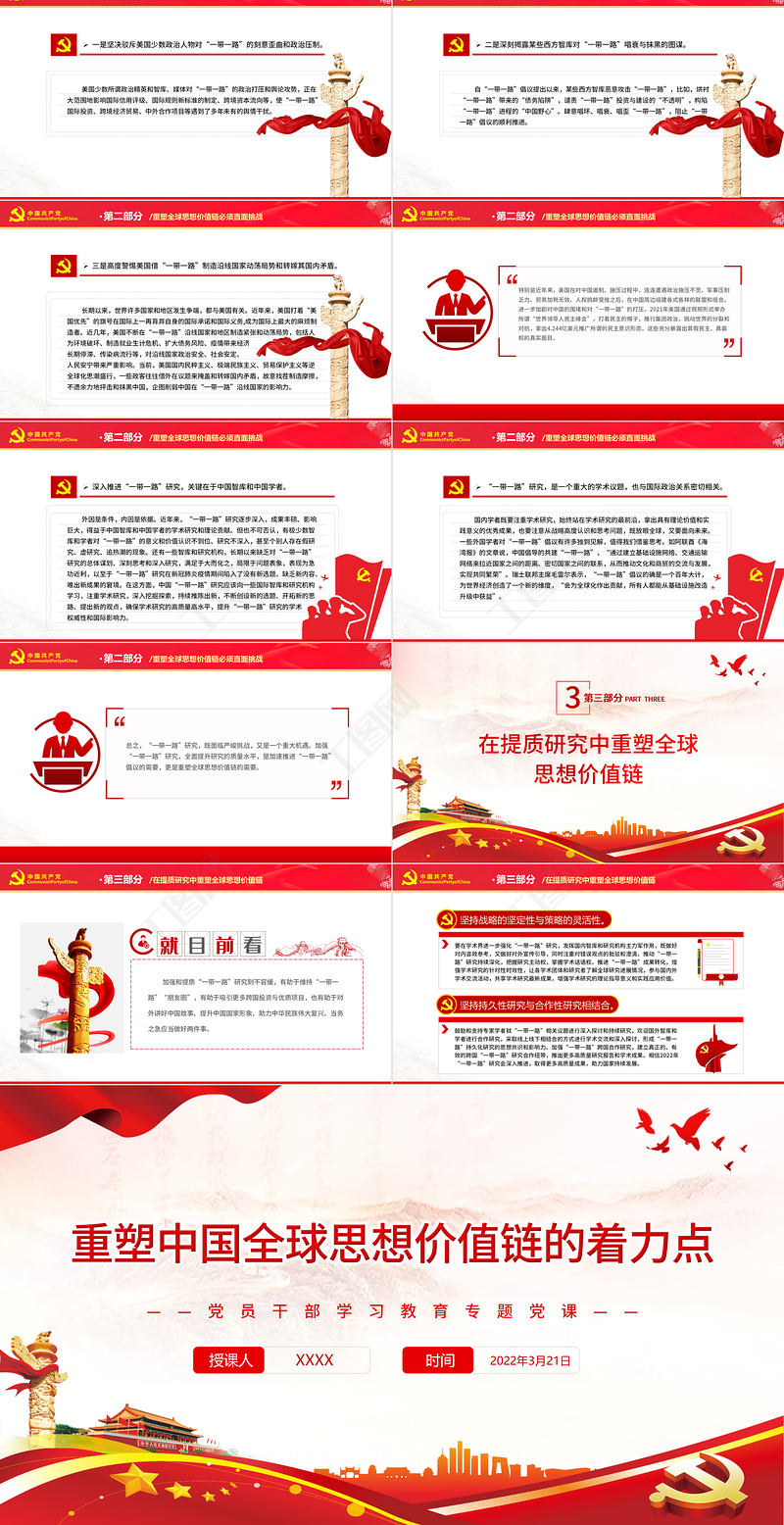重塑中國全球思想價值鏈的著力點PPT紅色黨政風黨員干部學習教育專題黨課課件模板下載