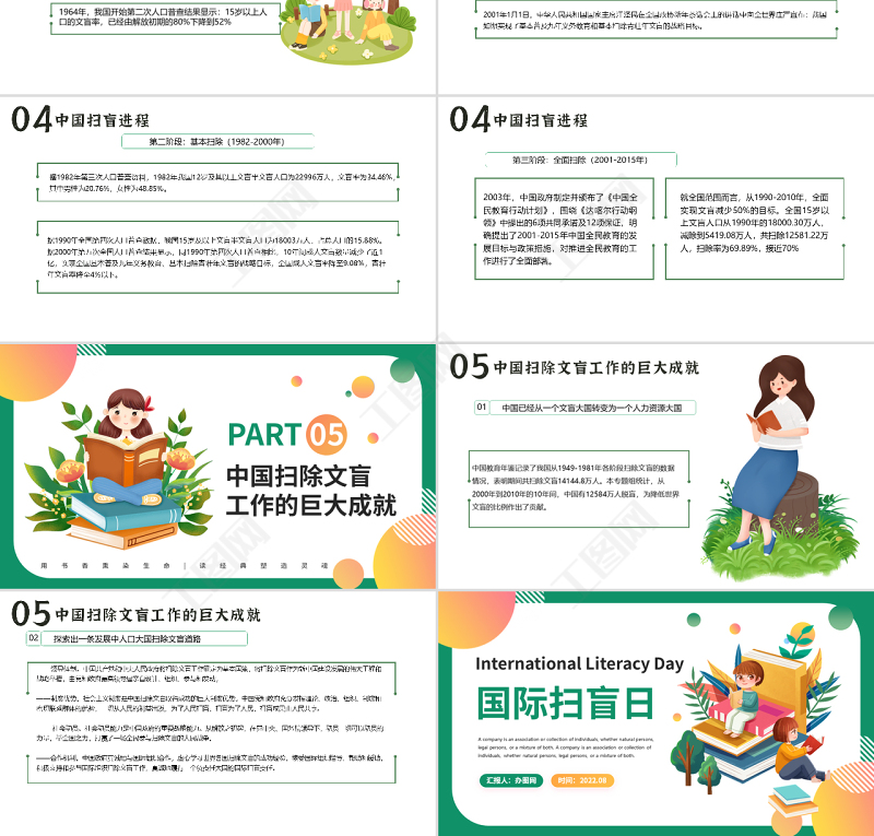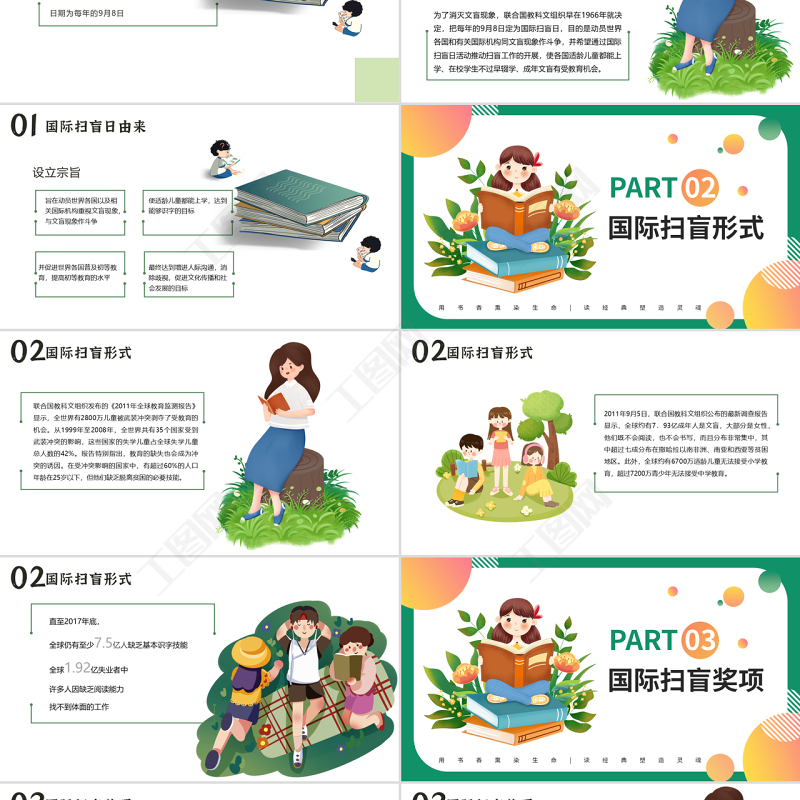 工圖網(wǎng)提供2022國際掃盲日PPT卡通風(fēng)掃盲日掃盲教育讀書識字課件模板供會員免費(fèi)下載。更多精彩黨課PPT素材,盡在工圖網(wǎng)。