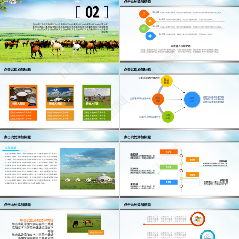 精美內(nèi)蒙古大草原民族風情蒙古包PPT模板