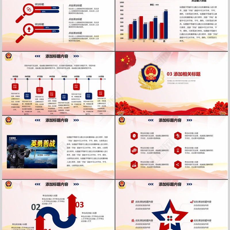 紅色氣公安警察武警特警PPT模板 Array