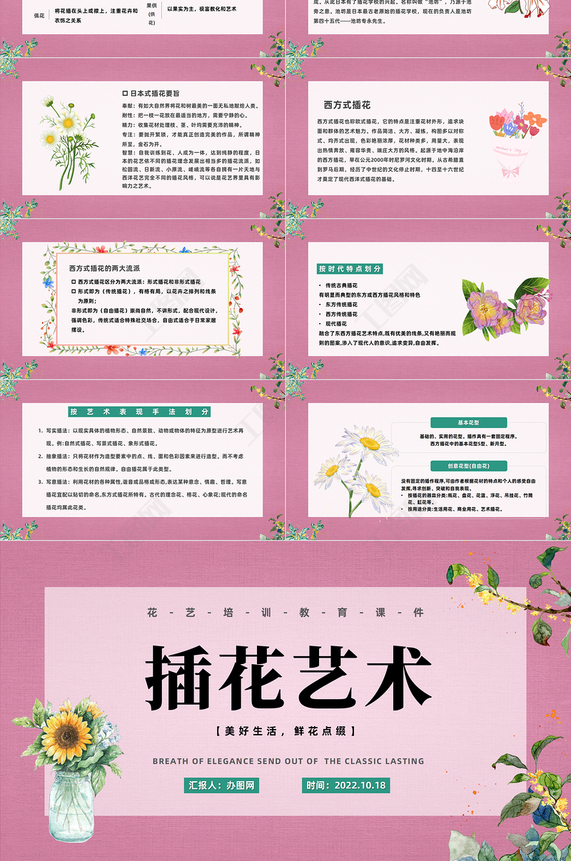 工圖網(wǎng)提供2022插花藝術(shù)PPT綠色清新風(fēng)花藝培訓(xùn)教育課件模板下載供會(huì)員免費(fèi)下載。更多精彩黨課PPT素材,盡在工圖網(wǎng)。