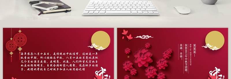 紅色喜慶節(jié)日慶典中秋賀卡PPT模板 Array
