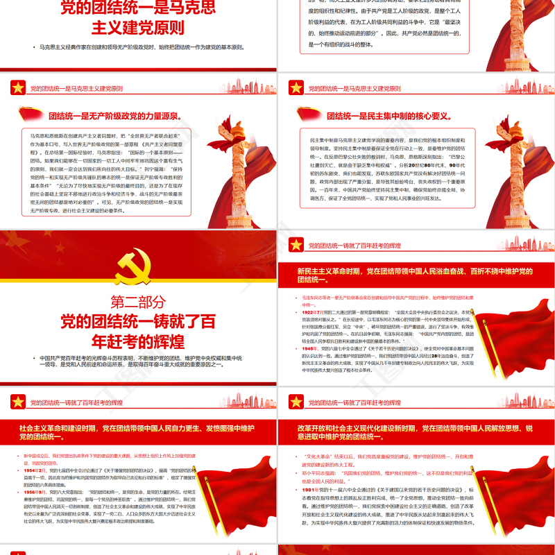 黨的團(tuán)結(jié)統(tǒng)一是走好趕考之路的關(guān)鍵所在PPT紅色大氣風(fēng)黨員干部深入學(xué)習(xí)《決議》專題黨課課件模板 Array