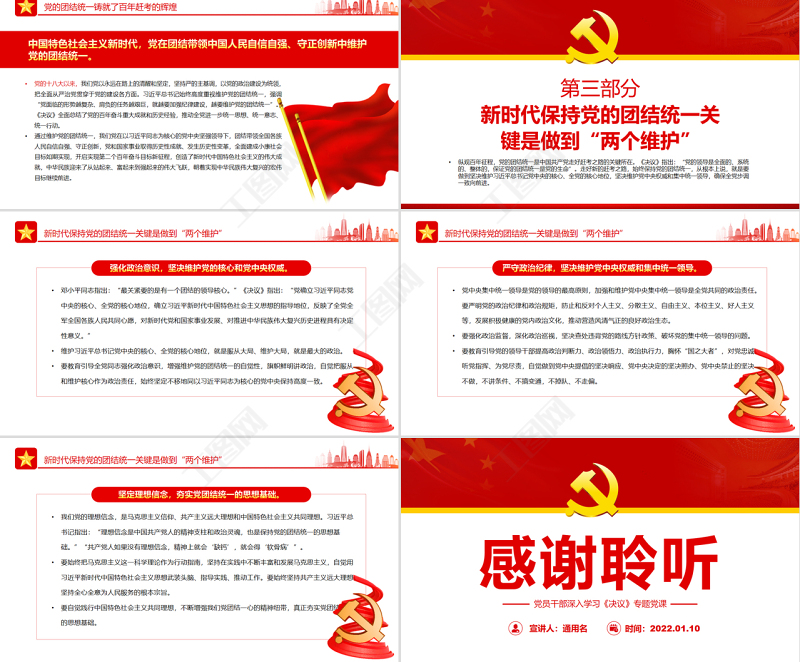 工圖網(wǎng)提供黨的團(tuán)結(jié)統(tǒng)一是走好趕考之路的關(guān)鍵所在PPT紅色大氣風(fēng)黨員干部深入學(xué)習(xí)《決議》專題黨課課件模板供會員免費(fèi)下載。更多精彩黨課PPT素材,盡在工圖網(wǎng)。