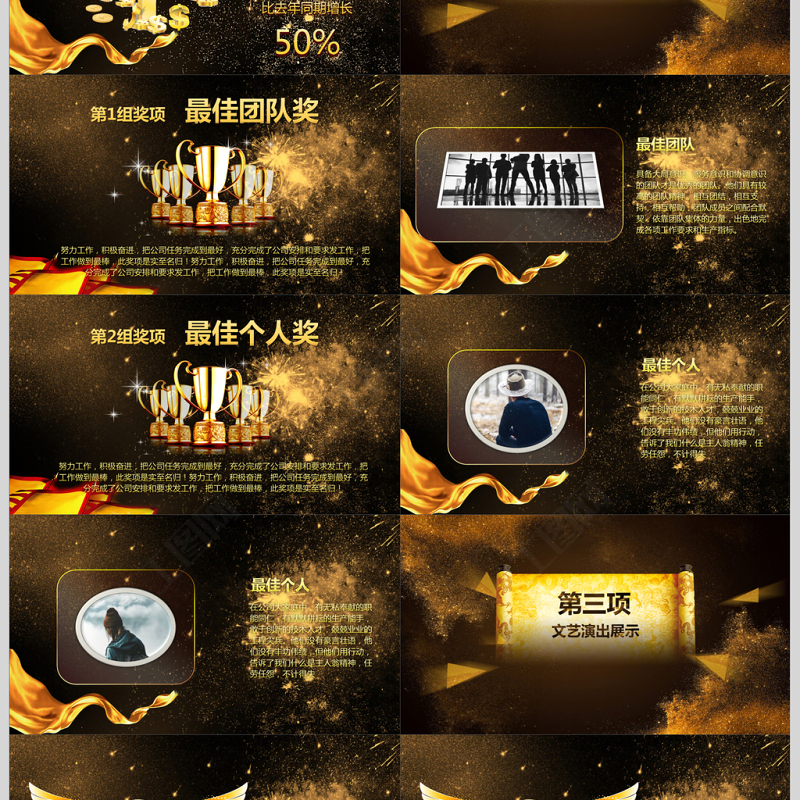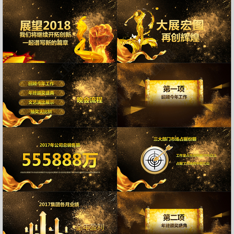 工圖網(wǎng)提供2018黑色年會(huì)頒獎(jiǎng)典禮晚會(huì)PPT模板供會(huì)員免費(fèi)下載。更多精彩黨課PPT素材,盡在工圖網(wǎng)。