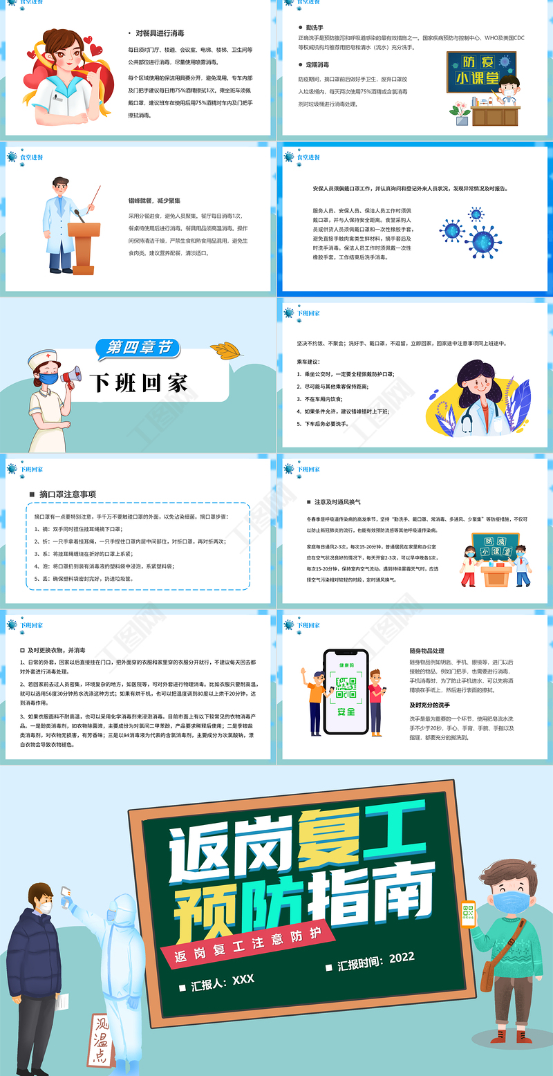 工圖網(wǎng)提供2022返崗復(fù)工預(yù)防指南PPT簡潔大氣風(fēng)范崗復(fù)工注意事項(xiàng)專題課件模板供會員免費(fèi)下載。更多精彩黨課PPT素材,盡在工圖網(wǎng)。