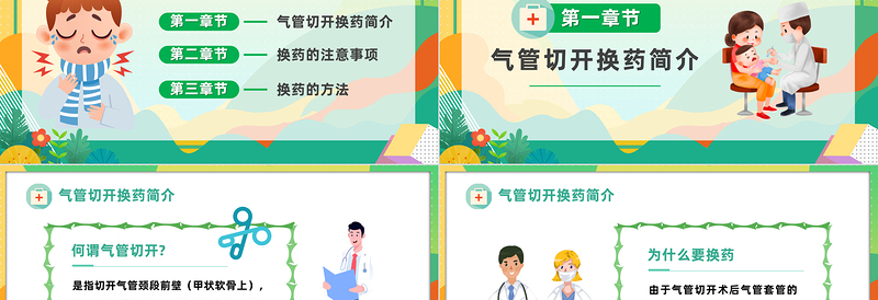 2023氣管切開換藥流程PPT清新插畫風(fēng)醫(yī)院氣管切開換藥流程培訓(xùn)課件模板下載 Array