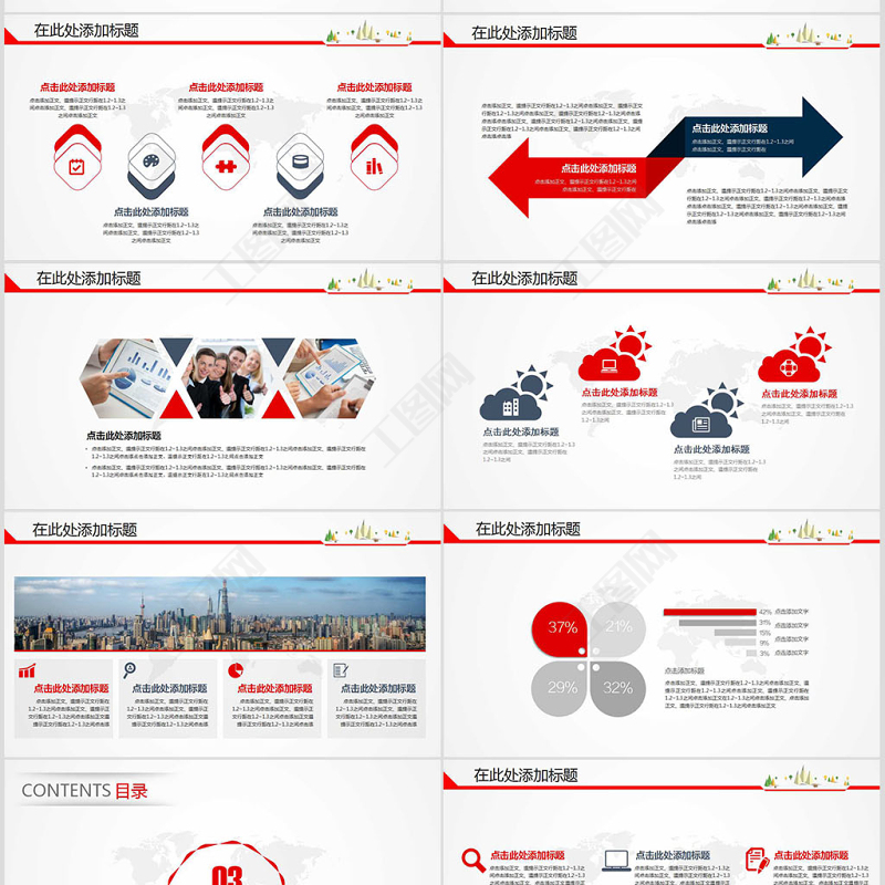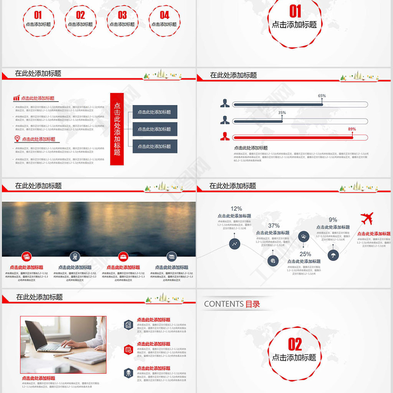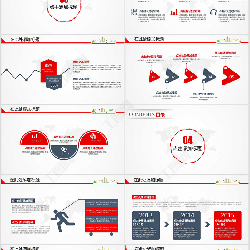 2019年紅色時尚年終工作總結(jié)PPT幻燈片模板幻燈片