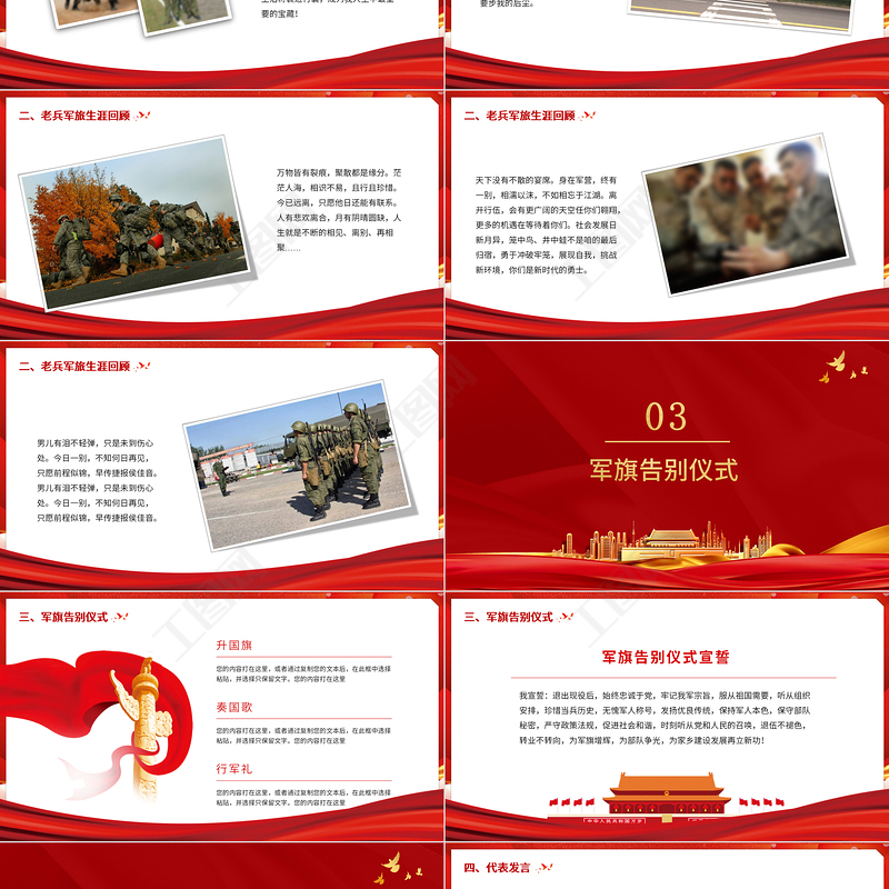 此模板版權(quán)為辦圖網(wǎng)網(wǎng)所有!提示:此PPT為盜版辦圖網(wǎng)網(wǎng)模板,如下載使用,會因兼容問題導(dǎo)致軟件崩潰,請勿下載?。?!此模板版權(quán)為辦圖網(wǎng)網(wǎng)所有!提示:此PPT為盜版辦圖網(wǎng)網(wǎng)模板,如下載使用,會因兼容問題導(dǎo)致軟件崩潰,請勿下載?。。?3軍旗告別儀式