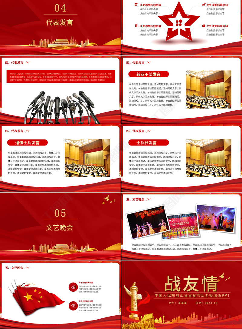 工圖網(wǎng)提供老兵退伍歡送會PPT紅色大氣戰(zhàn)友情送別老兵歡送儀式模板供會員免費下載。更多精彩黨課PPT素材,盡在工圖網(wǎng)。