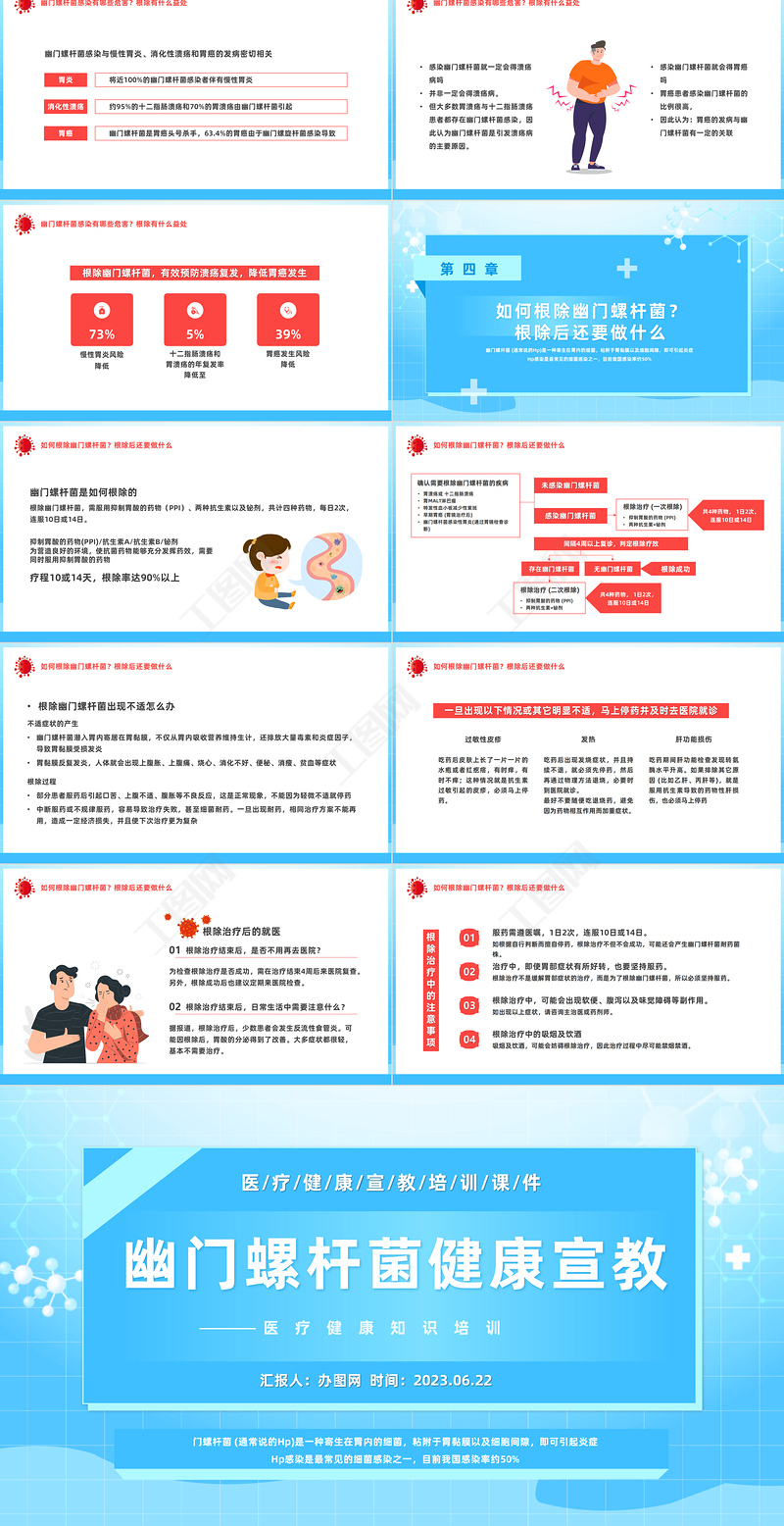 幽門(mén)螺桿菌健康宣教醫(yī)/療/健/康/宣/教/培/訓(xùn)/課/件匯報(bào)人:辦圖網(wǎng) 時(shí)間:2023.06.22