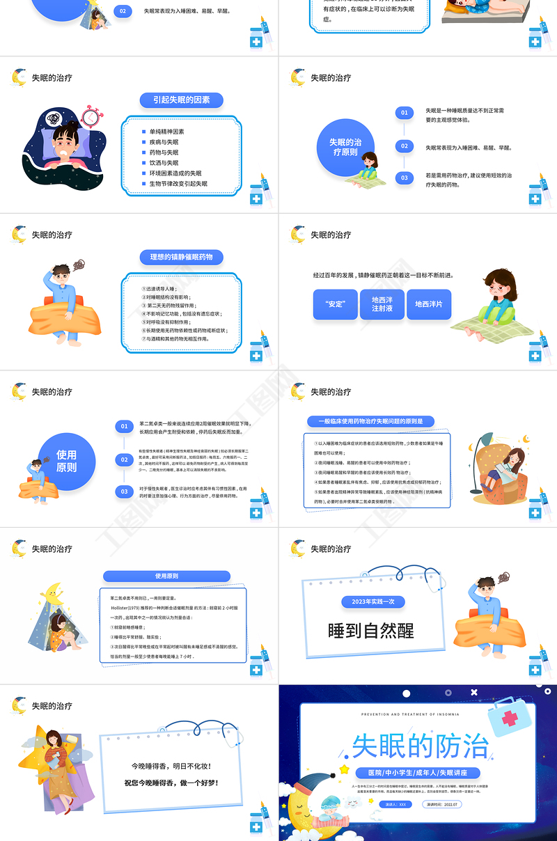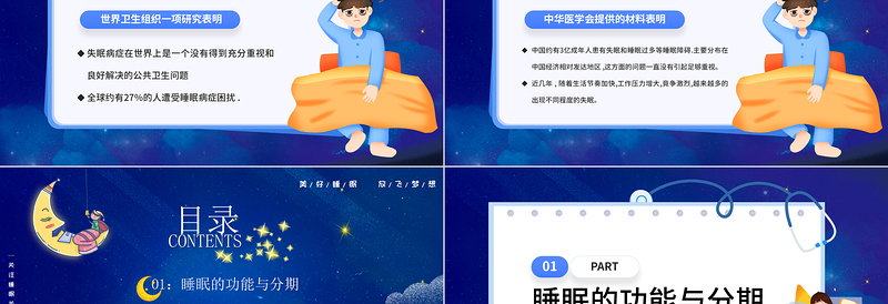 2022失眠的防治PPT藍(lán)色卡通風(fēng)失眠的防治宣傳講座課件模板 Array