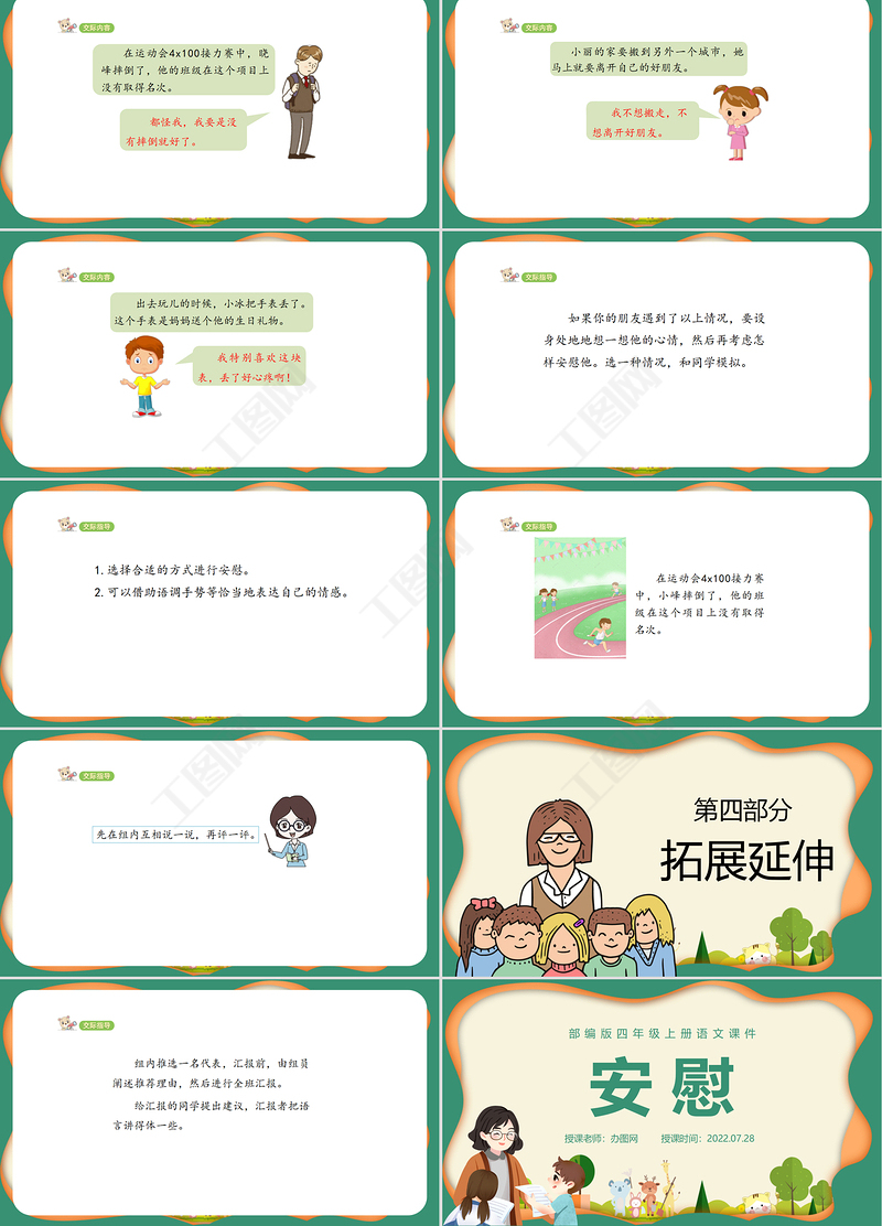 工圖網(wǎng)提供2022安慰PPT口語交際小學(xué)四年級(jí)語文上冊(cè)部編人教版教學(xué)課件供會(huì)員免費(fèi)下載。更多精彩黨課PPT素材,盡在工圖網(wǎng)。