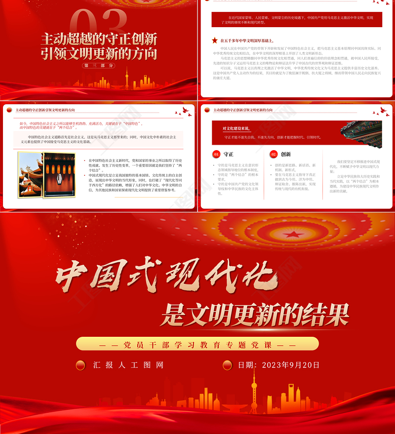 工圖網(wǎng)提供2023中國式現(xiàn)代化是文明更新的結(jié)果PPT大氣精美風(fēng)黨員干部學(xué)習(xí)教育專題黨課課件供會員免費下載。更多精彩黨課PPT素材,盡在工圖網(wǎng)。