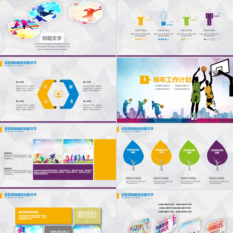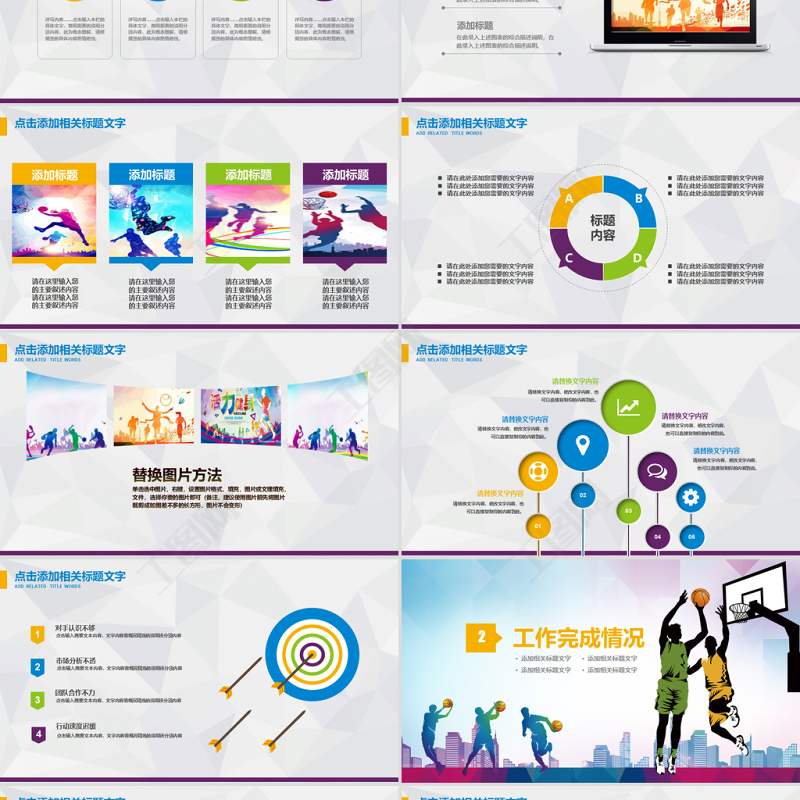 原創(chuàng)時尚籃球爭霸賽籃球比賽工作動態(tài)PPT模板-版權(quán)可商用