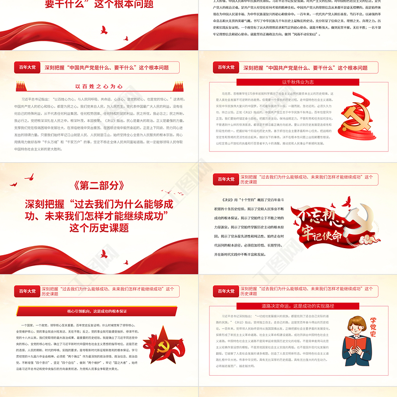 工圖網(wǎng)提供百年大黨要答好“三道題”PPT紅色大氣黨員干部深入學(xué)習(xí)《決議》專題黨課課件模板供會(huì)員免費(fèi)下載。更多精彩黨課PPT素材,盡在工圖網(wǎng)。