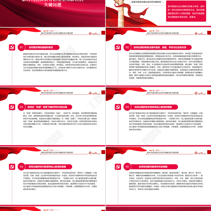 教育治理的關(guān)鍵在于制度現(xiàn)代化PPT紅色黨政風(fēng)黨員干部學(xué)習(xí)教育專題黨課課件模板 Array