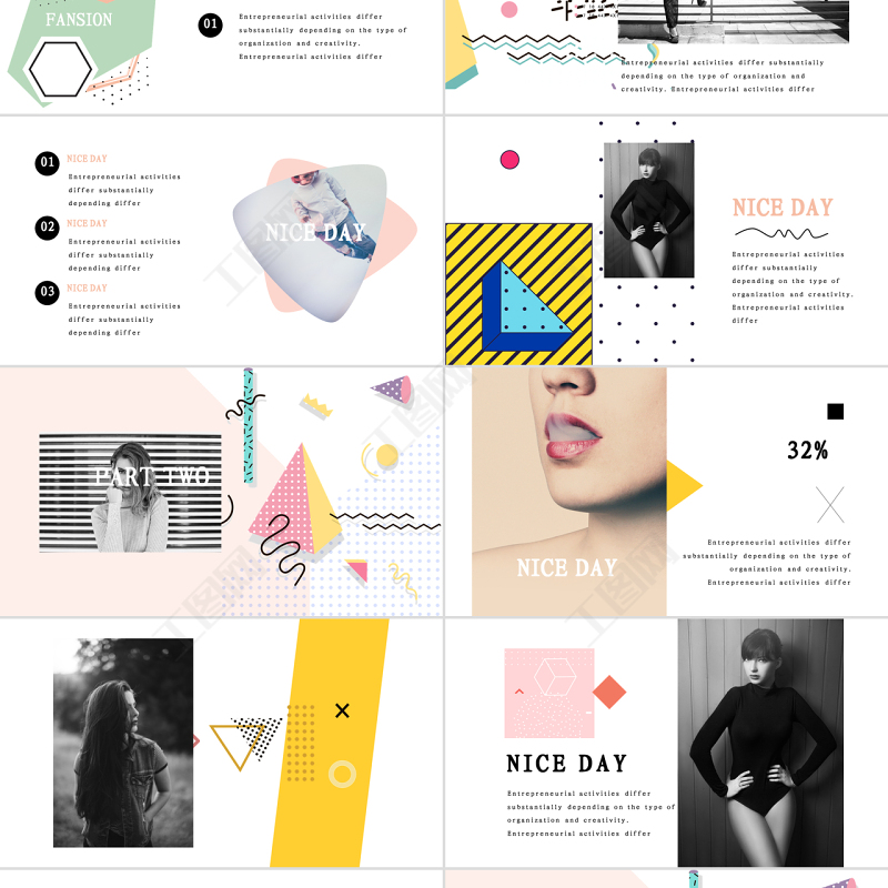 孟菲斯 孟菲斯風(fēng)格 幾何風(fēng)格 幾何線條 通用PPT模板 PPT模板 時尚 Array